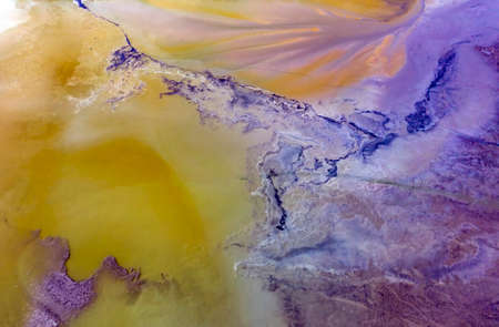 Beautiful aerial pattern of colorful water and mud, shot with a drone located at Geamana, Romania, a formerly village that was covered with toxic waste from a mining operation nearby.