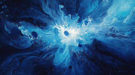 Abstract art with blue paint background, featuring liquid fluid strokes and grunge textures. A captivating blend of colors evoke a sense of movement and depth.