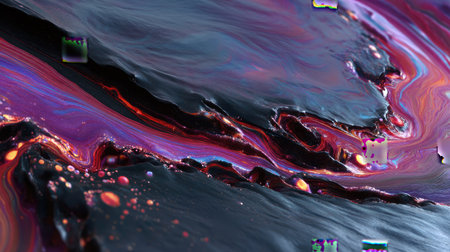 Viscous thick oil texture with industrial dark background showcasing vibrant patterns