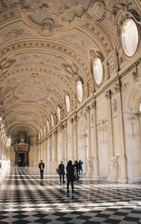 Venaria Turin - Italy Dec 2011 The magnificent Grand Gallery or Diana of the Royal Palace of Venaria. UNESCO heritage.