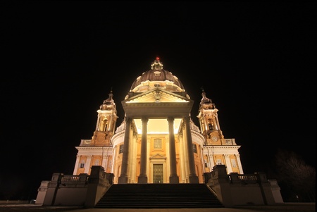 Turin, Italy - January 10, 2011 - Basilica of Superga by night
