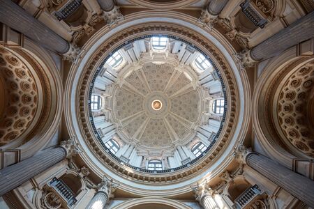 TURIN, ITALY - AUGUST 21, 2017: Superga basilica baroque dome interior, low angle view in Turin, Italy