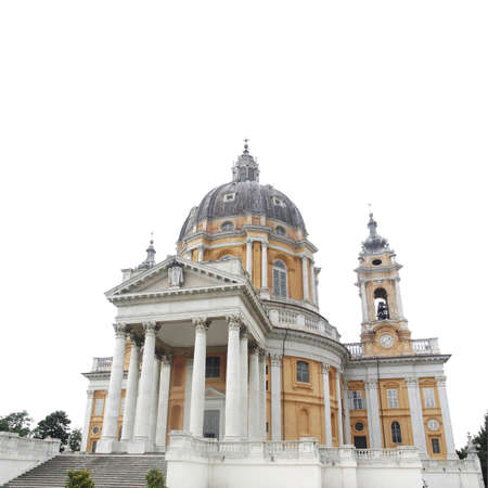 Baroque church Basilica di Superga,Turin, Italy - isolated over white