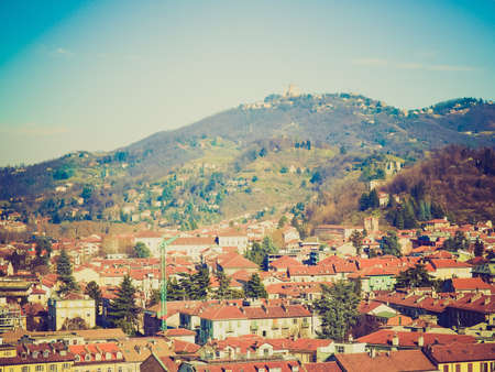 Vintage looking City of Turin (Torino) skyline panorama seen from the hill