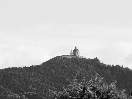 Basilica di Superga church in Turin, Italy in black and white
