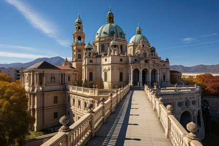 The Basilica of Superga, a stunning Baroque masterpiece, stands majestically on a hilltop overlooking the city of Turin, Italy. High quality photo