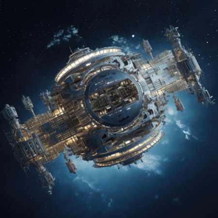 A large circular space station in space