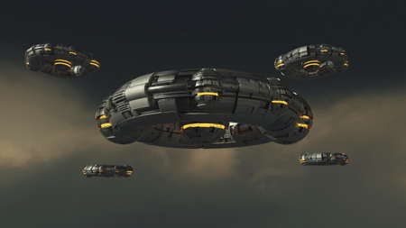 alien spaceship armada nearing Earth, for futuristic, fantasy or interstellar deep space travel backgrounds.