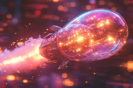 A close up of a glowing object that is flying through the air, AI