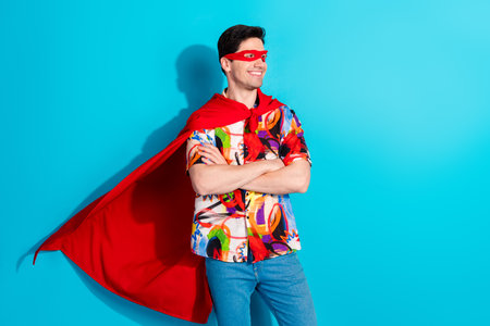 Funny superhero looking away in studio