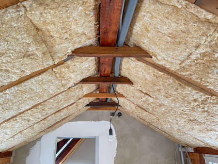Mineral wool for repairs, building materials, roof insulation for a house under construction