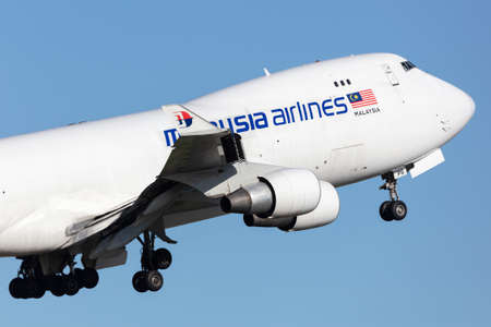 Adelaide, Australia - July 4, 2015: Malaysia Airlines Cargo Boeing 747-4H6(F) cargo aircraft 9M-MPS taking off from Adelaide Airport.