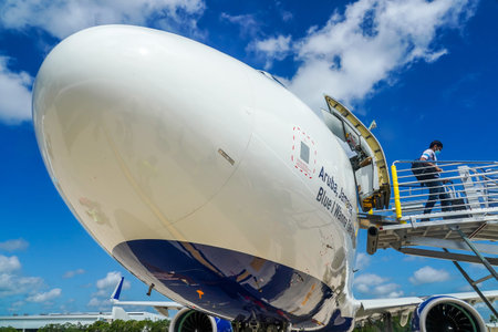 November 23, 2018, Moscow, Russia An Air Bridge Cargo Boeing 747 cargo plane comes in for landing at Sheremetyevo airport.