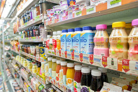 SEOUL, SOUTH KOREA - CIRCA MAY, 2017: inside a grocery store in Seoul. CU is a convenience store franchise chain in South Korea.