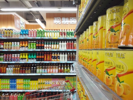 closeup of industrial products in a supermarket
