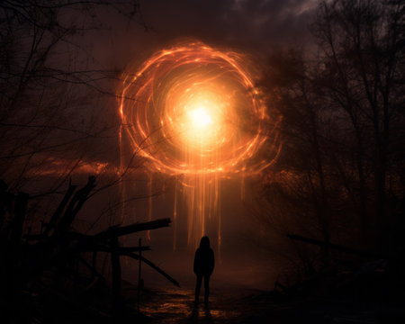 Mystical Encounter: Silhouette of a Figure Immersed in the Enchanted Forest