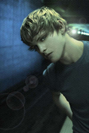 Young man in subway station with textured overlay