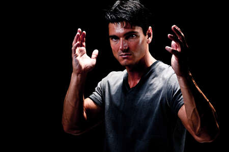 Man in darkness image . Mixed media