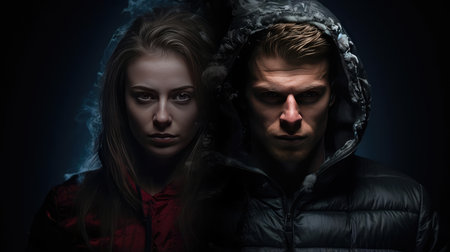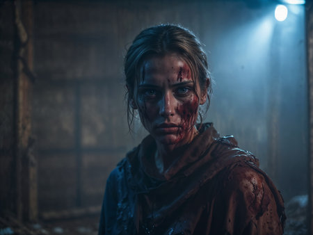 Intense woman with a dramatic makeup in a dark setting