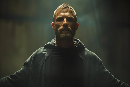 Portrait of a man in a black hoodie looking at camera