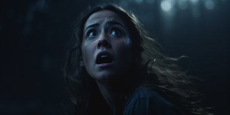 Shocked Woman in Dark, Terrorwave Style, High Resolution
