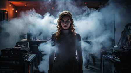 Woman Standing in Smoke Filled Room