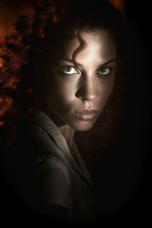 Intense gaze of a mysterious woman