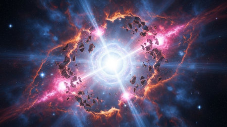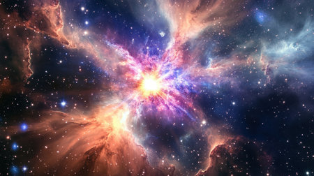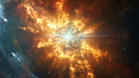 A breathtaking depiction of a cosmic explosion, featuring vibrant colors and intricate details, illustrating the awe-inspiring beauty of the universe and celestial events.