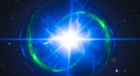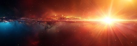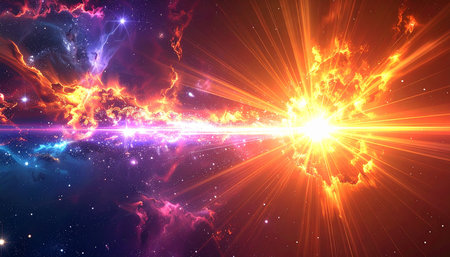 A stunning burst of light radiates in a cosmic backdrop, showcasing vibrant colors and a sense of wonder. Perfect for themes of exploration and beauty.