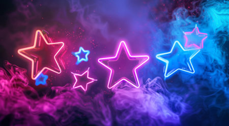 The stunning neon stars are illuminated by colorful smoke, perfect for vibrant and energetic designs