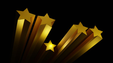 Golden stars on a black background. 3d rendering, 3d illustration.
