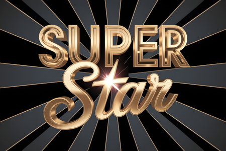 Golden 3d text spelling superstar with sparkling effect against a dark, radiating background