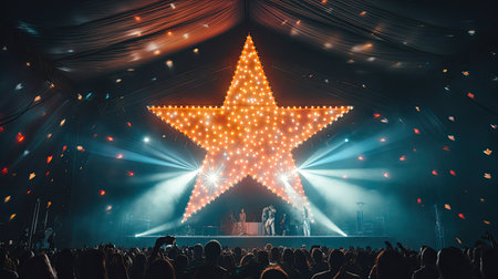 A stunning glittering star surrounded by vibrant confetti and shimmering particles, perfect for conveying themes of celebration, magic, and creativity.