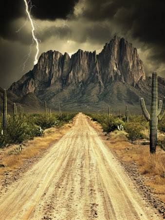Dramatic Desert Landscape Lightning Storm Dramatic Mountains Southwest Road sky sun art usa wild