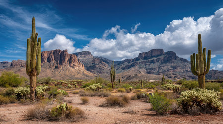 Saguaro National Park, Arizona, USA. Scenic panoramic view of Saguaro National Park.