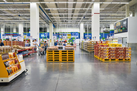 SHENZHEN, CHINA - APRIL 22, 2019: interior shot of Sam's Club store in Shenzhen. Sam's Club is an American chain of membership-only retail warehouse clubs owned and operated by Walmart Inc.