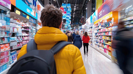 A bustling supermarket scene showcasing shoppers selecting groceries highlighting everyday consumer choices.