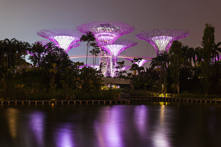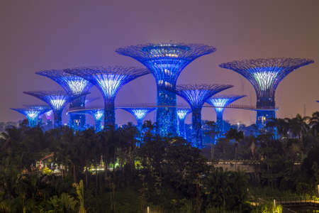 SINGAPORE - JANUARY 31: Night view at Garden by the Bay super tree groove January 31, 2014 in Singapore. Spanning 101 hectares of reclaimed land in central Singapore, adjacent to Marina Reservoir.