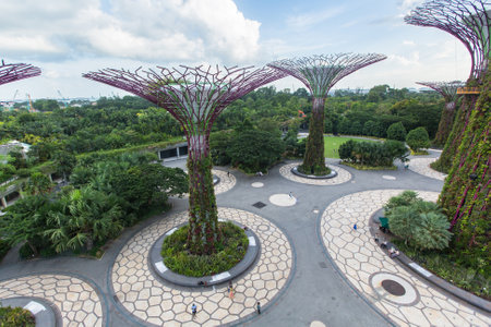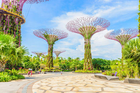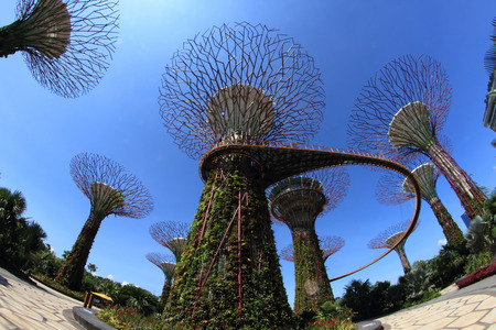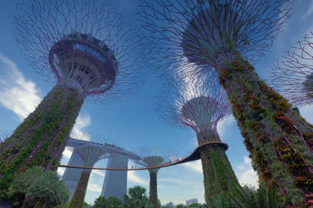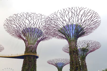 Singapore - March 18, 2016 : Supertrees are tree-like structures that dominate the Gardens' landscape with heights that range between 25 metres (82 ft) and 50 metres (160 ft).