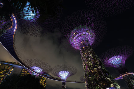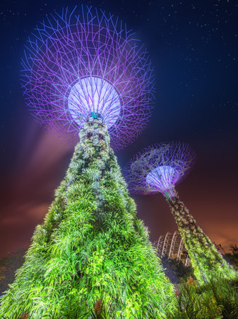 Night view of Supertree garden, Garden by the Bay, Singapore