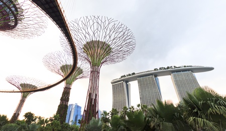 Gardens by the bay with the Supertree Grove in Singapore near Marina Bay Sands hotel
