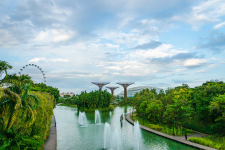 SINGAPORE - FEB 19, 2016: View of Gardens by the Bay. Gardens by the Bay is a nature park spanning 101 hectares (250 acres) of reclaimed land in central Singapore, adjacent to the Marina Reservoir.