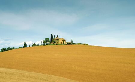 A farmhouse with cypresses in tuscany italy