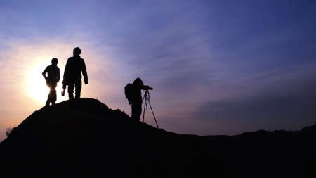 Silhouette of photographers on the mountains at sunrise
