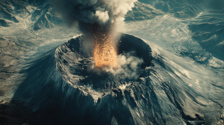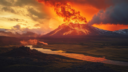 Dramatic volcanic eruption creating ash clouds in a breathtaking landscape view