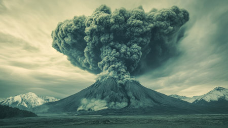 Volcanic explosion that creates a huge cloud of ash and smoke. generative ai