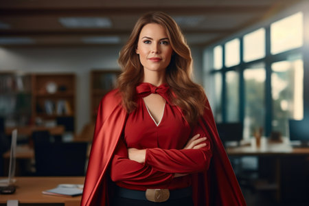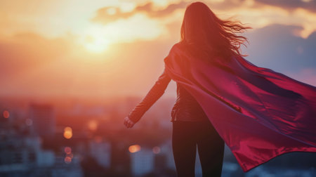 business successful woman in a superhero cape