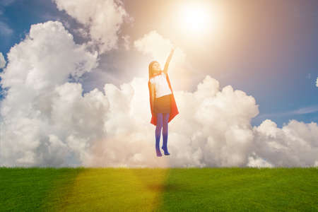 Superhero kid flying in dream concept