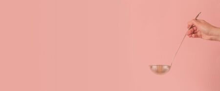 Blue Kitchen Soup Ladle Mock Up in Duotone Style on a pink background. 3d Rendering