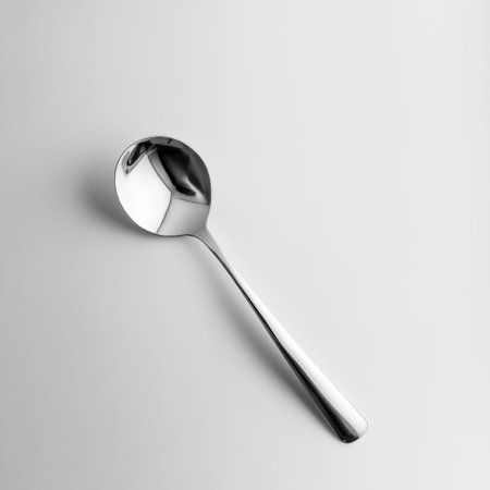 A beautifully captured stainless steel spoon on a soft pastel background that highlights its elegant design and smooth surface, enhanced by shadows.